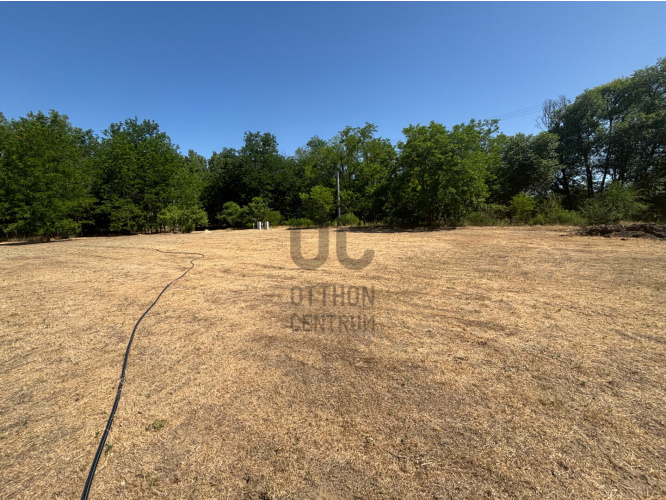 750 m2 területű, áram a telken belül, H-tarifára alkalmas szekrénnyel, fúrt kúttal!
