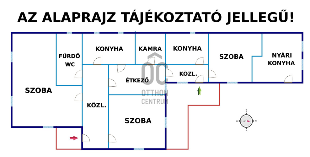 Helyiségeket tekintve kialakításra került 3 darab hálószoba, 2 darab konyha, étkező, kamra, fürdő WC-vel és közlekedők.Az épülethez tartozik egy nyári konyha, amely jelenleg az udvarról megközelíthető, de könnyen egybenyitható a főépülettel így akár hálószobává is alakítható.