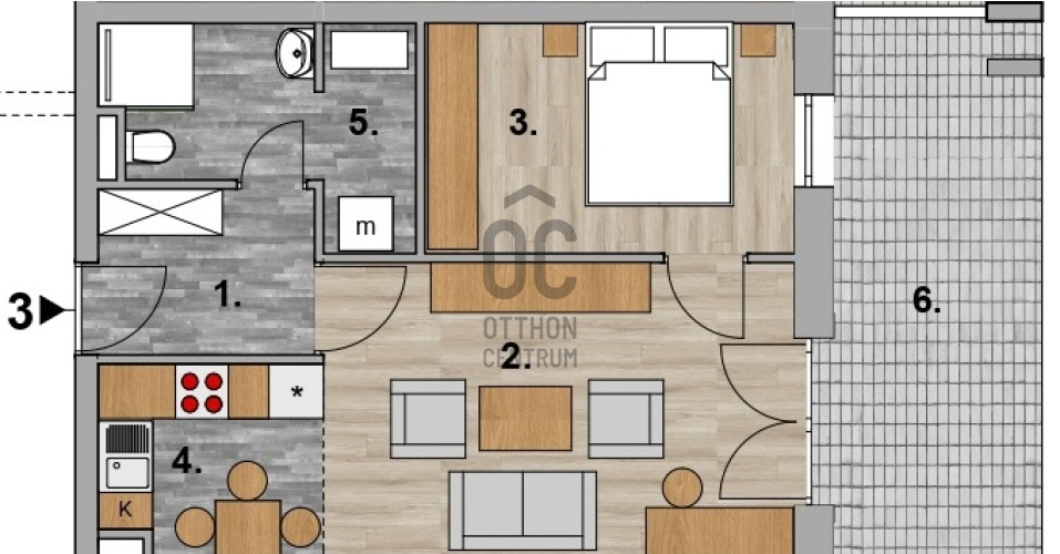 D épület fsz 3 lakás nappali 1 hálószobás