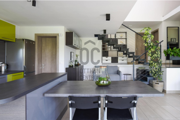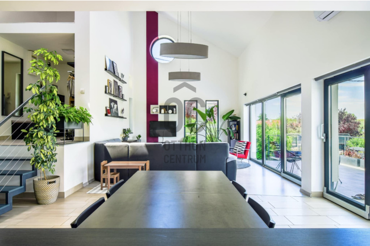 Herceghalom legszebb részén, a nyugodt és zöld környezetben egy prémium kategóriás családi ház várja új tulajdonosát! Az új építésű lakó-pihenő övezetben található ingatlan a modern dizájn és a funkcionalitás tökéletes harmóniáját kínálja. Az otthon rendkívül világos és tágas terekkel rendelkezik, hasznos alapterülete 139 nm+ 64 nm terasz. Minden részletét gondosan megtervezték, hogy a lakók kényelmét szolgálja.