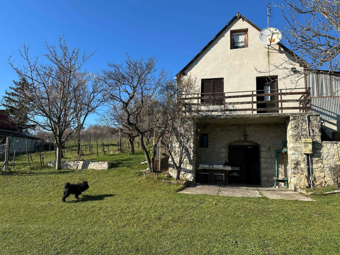 Ezen a telken jelenleg egy 35 m2-es kétszintes pince áll. Ez a pince szabályosan helyezkedik el a telken, felújítani, átalakítani lehet, bővíteni nem. Jelenlegi kialakítása: alsó szinten borospince és előtér. Emeleten előszoba, közlekedő, két szoba és mosdó.