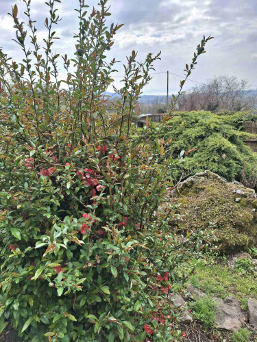 A 4457 m2-es telek az ingatlan előtt, illetve az felett található. A telek vége az erdővel határos. A ház melletti udvarban fügefák és, örökzöldek adnak árnyékot.