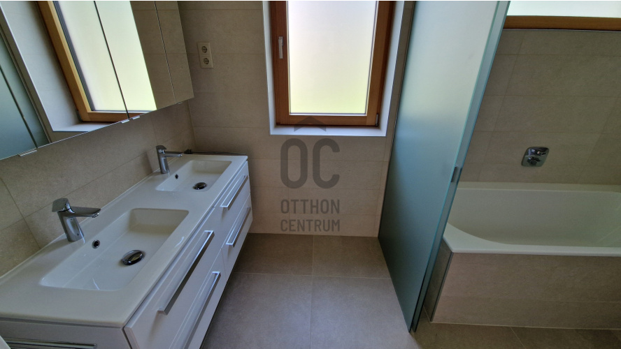 Budapest III. kerület Táborhegyen az Erdőalja úti iskolához közel kiadó egy újépítésű, luxus minőségben kivitelezett ikerházfél.